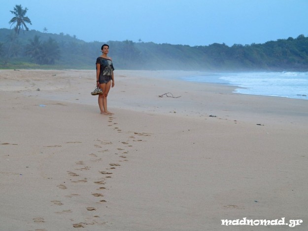 Μπαίνοντας στη χώρα, ταξιδεύαμε συνήθως κοντά στην ακτή κι ανακαλύψαμε πανέμορφες παραλίες, όπου κατασκηνώναμε, κάναμε τα μπανάκια μας και το χαιρόμασταν. Ειδικά κοντά στην Παραλία Akwidaa, που ανακαλύψαμε ένα εγκαταλειμμένο, ξύλινο υπόστεγο σ’ ένα ήσυχο κομμάτι της αμμουδιάς, ήταν μαγεία… Μας άρεσε τόσο, που μείναμε δυο μέρες εκεί!