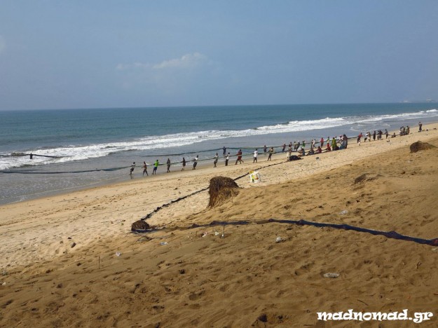 The next slap on the face was for me… I was overlooking a beach, photographing some fishermen that were pulling their nets out of the sea. Christina saw a few of them getting annoyed, waving me to stop photographing, but I was looking at them through the camera and could not notice that. I was too far to talk to them anyway. Then, I saw someone dropping the nets, grabbing a coconut and starting running towards me! I could not believe this was happening and I was frozen for a moment! When I realized that he was really furious, determined to hit me, I started the engine and I disappeared as if I had robbed a bank! Luckily no coconut found its way to me…